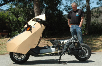 Conceptually, these are very different vehicles. The original Helix is designed to carry two people with a trunk for storage. It is a great machine. Its fairing does a pretty good job of protecting the occupants and it gets 64 mpg, riding it hard. I want to move one person cross-country at real posted speeds, into headwinds, over mountains, with the best wind penetration possible. I doubt that Honda had this in mind for their Helix. I am hoping that real streamlining will lead to dramatic reduction in fuel consumption. | ||||||||||||||||||||