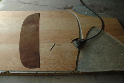 It is simple to draw a line on 5/8" plywood, flip it over on the centerline and draw the other side. With a saber saw, I cut out the full section in the 5/8" plywood. Now I have a strong shape on which to make the other side. | ||||||||||||||||||||