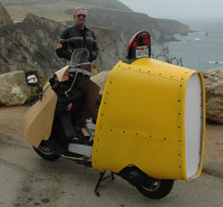 Do you want a peek at the future I see? "The Last Vetter Fairing" is a streamlined, teardrop shaped design, built over a standard Honda Helix. It will provide maximum everything... most fuel economy, the best rider protection and most carrying capacity of any two wheeler ever made.