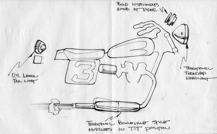 The Bonneville TT I designed it as a replacement for the 1971 Bonneville. It became a triple instead. |