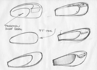 Americans and British riders have a fondness for teardrop shaped tanks: Round at the front and pointed at the rear. The teardrop tank was essential in recapturing the Classic quality of my Bonneville TT. | ||||||||||||||||||||||||||||||||||||||||||||||||||||||||||||||||||||||||||||||||||||||||