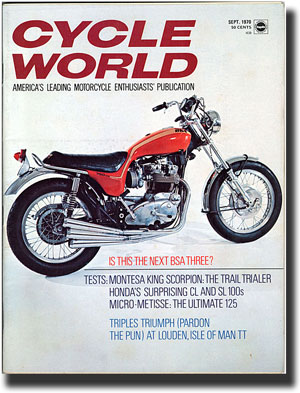 Six months later, after the Triumph engineers were done with the model, it was sent to Cycle World for a feature story. Close examination shows that the extra fork slugs were there at the time of this photograph in July of 1970.