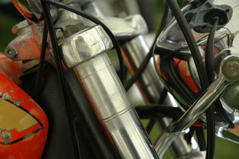 Invariably, somebody will bring up the fact that the forks on the Vetter Rocket 3 model are extended. While in England, I stated that I would stake my reputation on the fact that I did not extend the forks. With all those BSA Rocket 3s and Hurricanes around, it was easy to settle this, once and for all.
