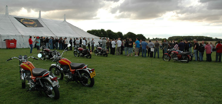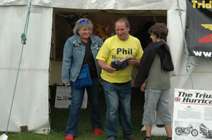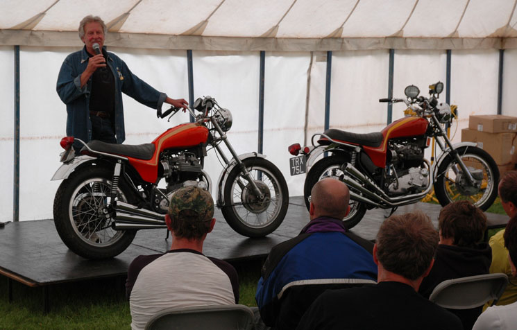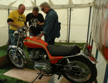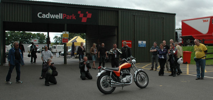 Special for us was having the original models there that I made for Triumph, so many years ago. In the summer of 1969, I redesigned a standard Rocket III, turning it into the Vetter Rocket III which eventually became the Triumph Hurricane of 1973. At Cadwell, the Club gave it its own special tent. | ![]() |