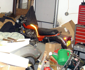 Here is the bike as it sits in the back of my father's garage. I got the green light to revive her over the winter (thanks to your encouragement). It shouldn't need much, it was in great shape when he parked it back in early 90's. I'll send "after" pics in the spring. Best Regards, "JR" | |||||||||||||||||||||||||||||||||||