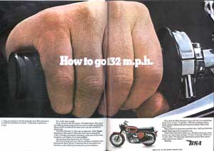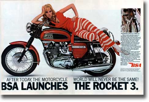 Don answers: I worked with a very creative guy by the name of Rick McBride from California to do the BSA ads. McBride had done work for Pete Colman. But, when Thornton came I was forced to hire a national ad firm in New York to handle all of the company’s adverting. It was the new agency that came up with the girly ads. It was a bad experience, but the photo shoots were fun and I tried to keep an open mind. It was my last assignment on behalf of BSA marketing, having been reassigned as vice president of national BSA sales. Thornton wanted his people to handle advertising and promotion, he knew I was on my way out, but he didn’t know that I also knew the end was near as a matter of personal choice. | |||||||||||||||||||||||||||||||