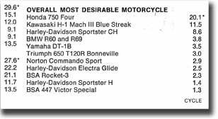 Survey from August, 1969 Cycle Magazine | |||||||||||||||||||||||||||||||