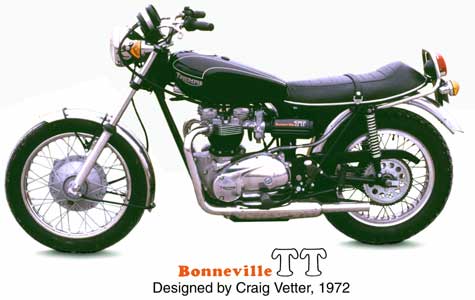 I know this because when I was at Meriden in December of 1972, Bert Hopwood even lent a hand with a clay model of my 1972 Bonneville TT design. Jack and I worked together to incorporate the design elements of this bike into the electric-start triple. These became the T-160 and the stillborn T-180. This is another story, however. | |||||||||||||||||||||||||||||||||||||||||||