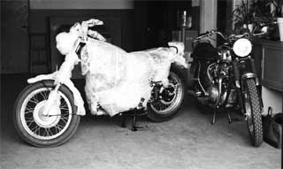 | Craig remembers: The bike and I waited in the BSA service room. Several hours went by as various BSA staff walked by. Typical comments were, "sure is orange" or, "never seen anything like that before." The fact is that nobody had seen anything like this and they really did not know what to make of it. Finally, Mr. Thornton walked in and there was an audible gasp, then he blurted out, "My God it’s a Bloody phallus! Wrap it up and send it England!" And with that, everyone laughed and clapped and began to give me compliments. The boss had told them it was okay. | ![]() | ||||||||||||||||||||||||||||||||||||||||||