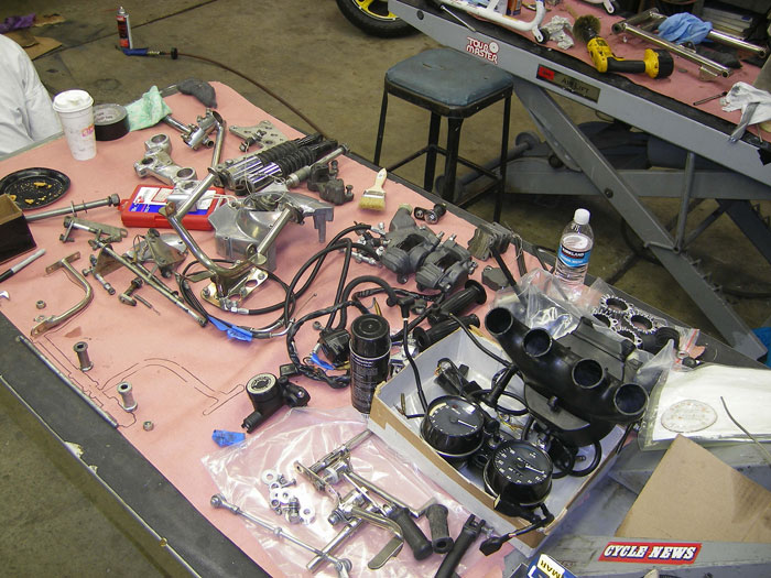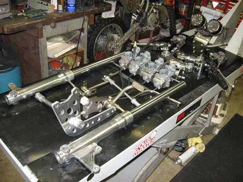 "Fork legs and triple clamps cleaned up real nice since they used real aluminum and not pot metal like the Orientals are so fond of.