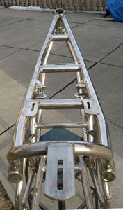 "As far as the frame polishing. We used stripper to take off the top layer of clear coat that was slowly fading away. From there we used a brass wire wheel and polishing compound, what a mess, to brighten up the nickel. Thumbnail and razor blade scraper to remove the rust spots that had attached themselves to areas seldom seen. Lower frame rails and such. Followed that up with Never Dull and and a nice hotel towel for the final buff." | |||||||||||||||||||||||||