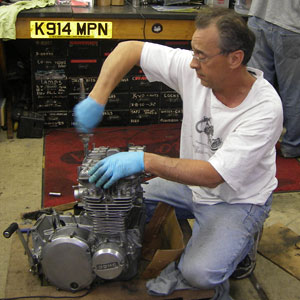 Your bike has Betor forks where mine were Rickman forks. Look the same except the "Betor" logo stamped into the side of the fork leg." Well, I always wondered how Derek made these special forks. |