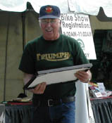 Frank Powelson of Brooklyn, MI walked away with first prize for his beautiful 1973 Triumph Hurricane. A very proud Mark Mederski officiated at the awards. It sure was hot that July day in Ohio! | |||||||||||||||||||||||||||||||