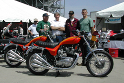 Two beautiful Hurricanes showed up at Sears to delight the crowds. On the left in the hat is first place winner, Bill Whalen. On my left is Duane Anderson (maroon shirt) who helped me build the original Vetter Rocket 3 in 1969. Along side Duane at the far right (green shirt) is Kim Rowden, owner of the 2nd place Hurricane. | |||||||||||||||||||||||||||||||