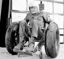 ![]() | I am sure that some of you have thought that it might be a good idea to use a propellor to move you along. In 1961, I carved a prop for my Homelite chainsaw engine and built a go kart for it. Here's what happens: It blows oily, stingy stuff in your eyes It accelerates very slowly. You don't want to do this. Hooking it up to the rear wheels made it go a lot faster. | ||||||||||||||||||||||||||||||||||||||||||||||||||||||