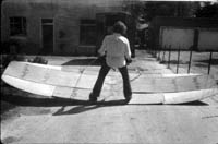 | The idea was to be towed behind a boat and fly, standing on the wing. I didn't have a boat so we towed it behing my Divco truck. Checkout my QuickTime movie: | |||||||||||||||||||||||||||||||||||||||||||||||||||||||