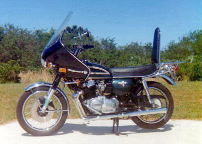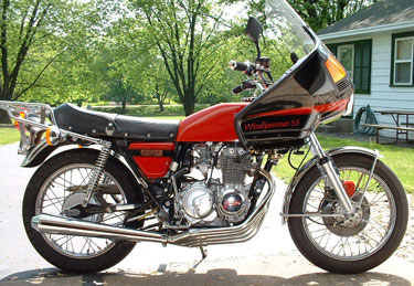![]() | Here are pics of two of my Vetter equipped bikes, a 1980 KZ1300 which I've owned for 20+ years,(100,000 miles) and a 1975 CB400F "barn find". All of the brackets were made by me, I also did all of the paint. To me there is no fairing as good as a Windjammer, I've had about a dozen or so of them on nearly every bike I've owned since 1971. Gene Zdenek | ||||||||||||||||||||||||||||||