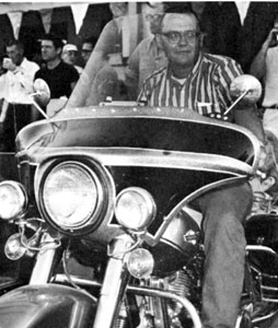 ![]() | Charly Perethian grins after his test drive on the first Liberator. We wanted this fairing to offer the most touring protection possible. After all, the FLH was the definitive cross - country cruiser of America, right? Inside were two enormous side storage compartments. Outside, the Liberator lit up like a Christmas tree. Elvis understood he would be noticed with his Liberator. | ||||||||||||||||||||||||||||||||||||||||||||||||||||||||||||||||||