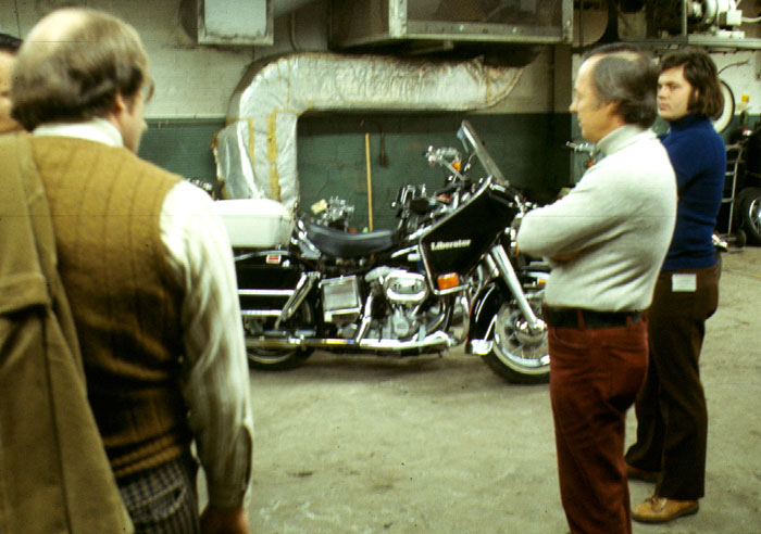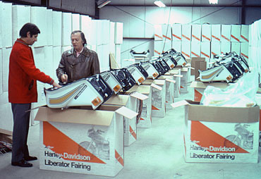 Dave Caruso accepts production for Harley-Davidson | Derek Rickman, visiting from England, and Tony Salsbury inspect shipments to Harley | ||||||||||||||||||||||||||||||||||||||||||||||||||||||||||||||||||