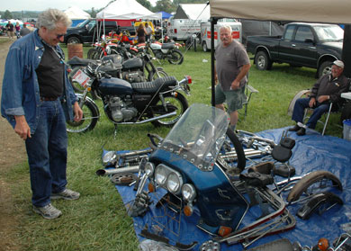 ![]() | Davenport AMCA Meet, 2009 This forlorn Liberator awaited a buyer. Very valuable and unobtainable parts were missing. The chrome headlight ring is hard to find, replacement orange side marker lights simply do not exist. The reason is that the side marker lights were made especially for us by Bob Rudolph of Bates. Bates made them in red for their saddlebags but they graciously made them in orange for the Liberator. Probably none exist. | ||||||||||||||||||||||||||||||||||||||||||||||||||||||||||||||||||