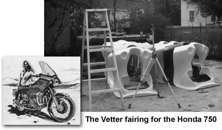 My work was beginning to attract attention and things were beginning to happen quickly. We were running out of room in the Meathouse and had to begin working outside. Rows of Vetter Phantom fairings filled the parking lot. It was a good thing that we all rode motorcycles. The Vetter Phantom 4 was popular | ||||||||||||||||||||||||||||||||||||||||||||||||||||||||||||||||