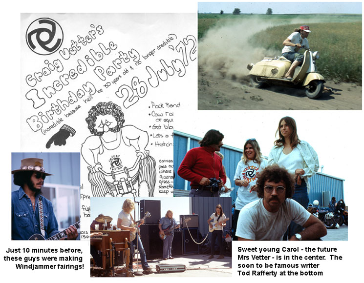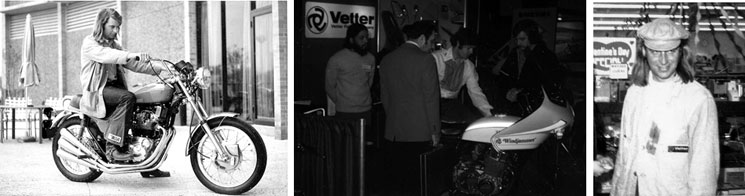 After hours, most of the Fairingwrights stayed around. The Vetter shop was more fun than home. The shop was full of tools and I encouraged them to use them. Most worked on their bikes. Some raced. I put in a short track out back so we could practice. I lived in a trailer out behind the shop so I was there after hours, too. I knew everybody and they knew me. I knew their motorcycles, their girl friends and dogs. It was a great period in our lives. | ||||||||||||||||||||||||||||||||||||||