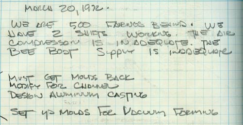 Feb 12, 1972: I saw the first Hurricane at Houston, Texas. We were showing the Windjammer at the Houston Trade Show. What a great weekend. | ||||||||||||||||||||||||||||||||||||||