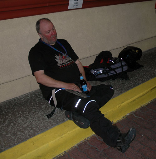 | They are welcoming the arriving Iron Butt Rally Riders, of course. One by one, exhausted riders straggle in. John had arrived! Sonia and Carol are so relieved. This has been hard on them, too. | ||||||||||||||||||||||||||||||||||||||||||||||||||||